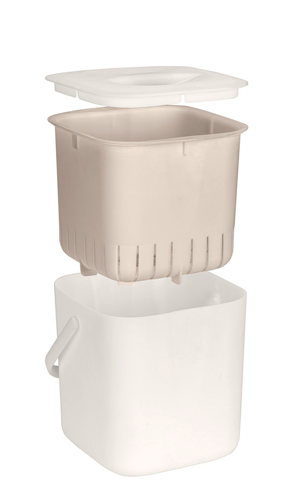 Der clevere Küchenkomposter ist mit einem herausnehmbaren Sieb ausgestattet, das die Trennung von Flüssigkeiten erleichtert. Diese können ideal als Pflanzendünger genutzt werden, was ihn zu einem umweltfreundlichen Abfallbehälter für die Küche macht.