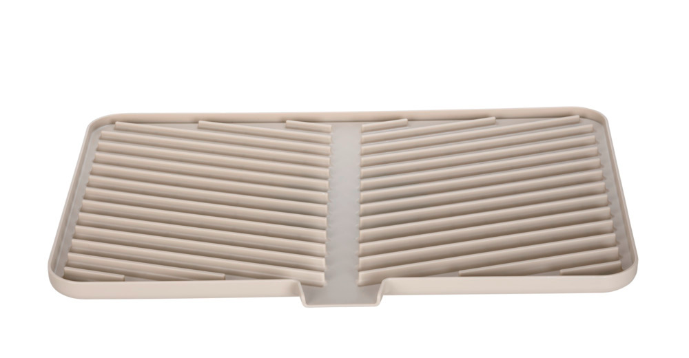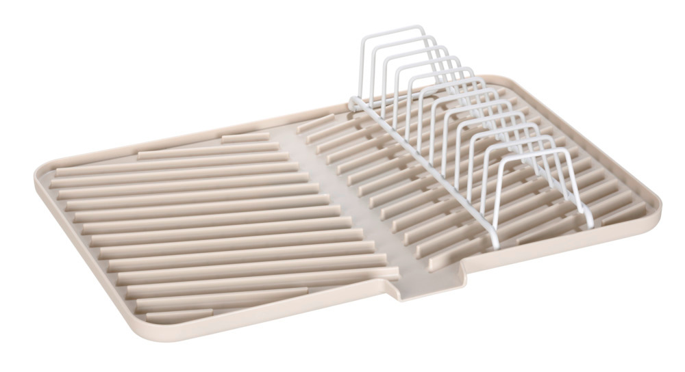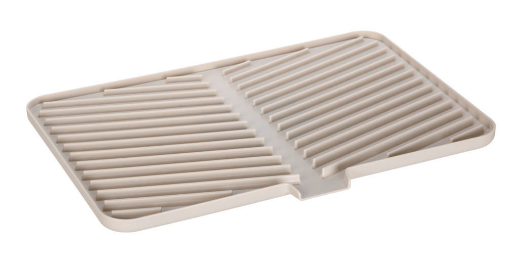 Die Silikonfüße verhindern ein Verrutschen und schützen Ihre Spüle vor Kratzern. Die durchdachten Maße und die beige-transparenten Farbtöne fügen das Abtropfgestell harmonisch in jede Kücheneinrichtung ein.