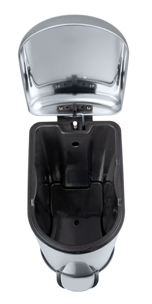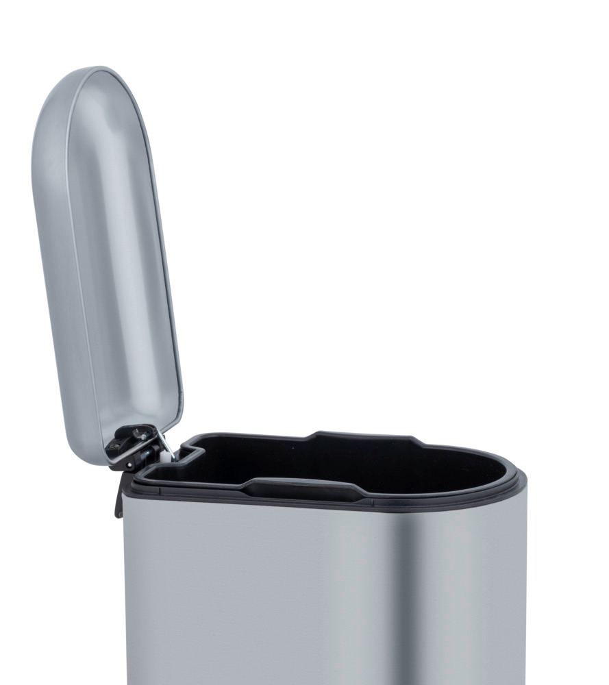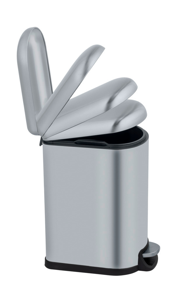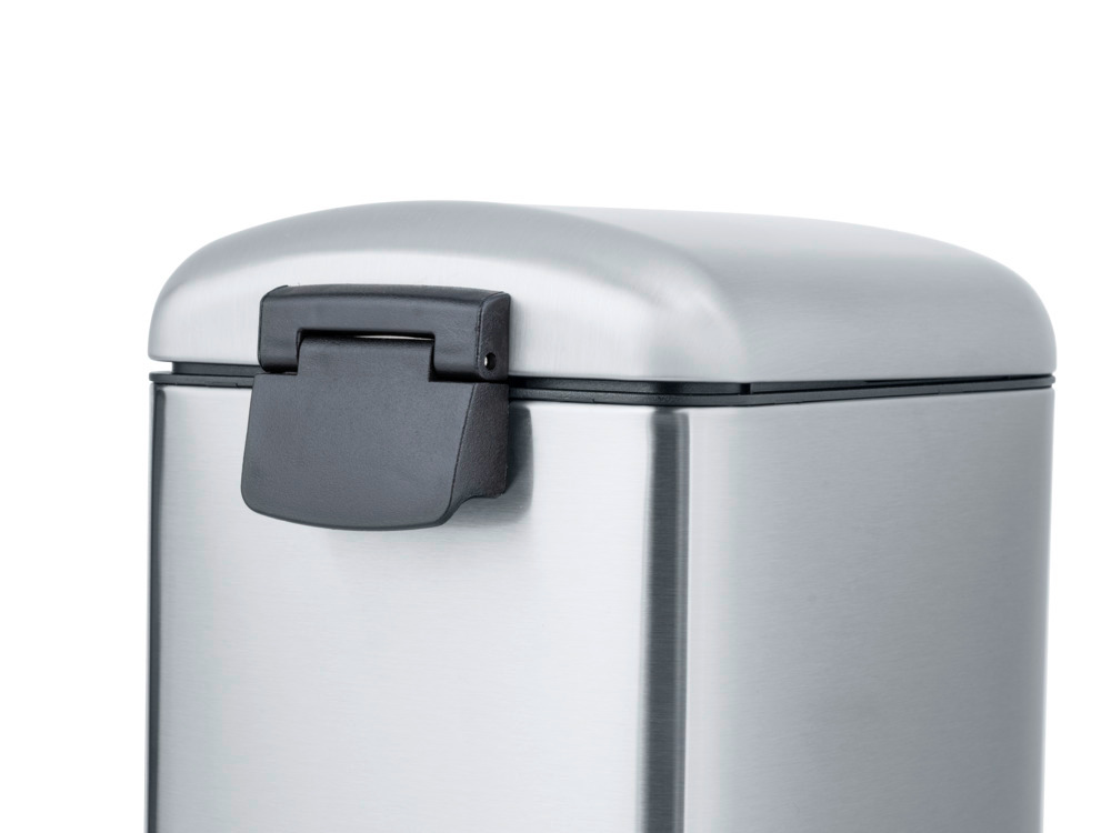 Der Treteimer Lara aus Edelstahl besticht durch seine Easy-Close-Absenkautomatik, die ein leises Schließen des Deckels gewährleistet und und dem großzügigen Fassungsvermögen von 10 Litern.