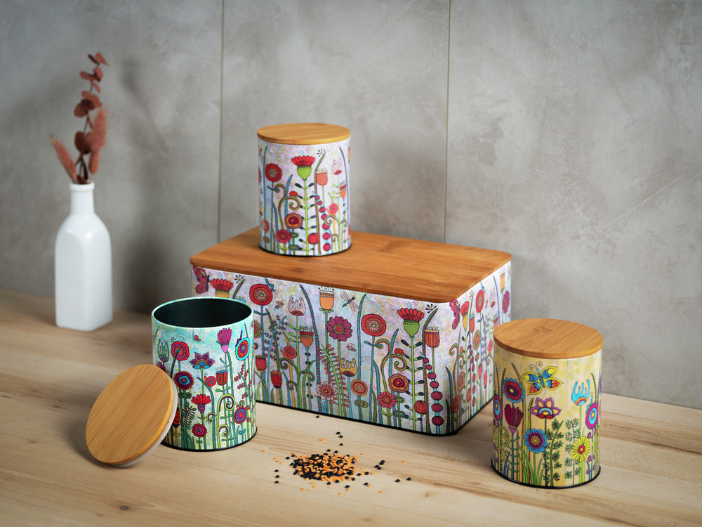 Die ansprechenden Vorratsdosen Garden im praktischen 3er-Set sind das Ergebnis einer inspirierenden Zusammenarbeit mit der talentierten Künstlerin Tina Hötzendorfer, bekannt für ihre Rollin'Art-Werke.