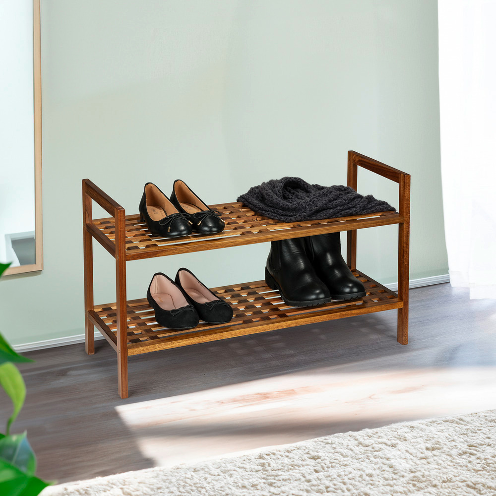 Das stapelbare Schuhregal aus Akazienholz macht an verschiedenen Orten eine elegante Figur.