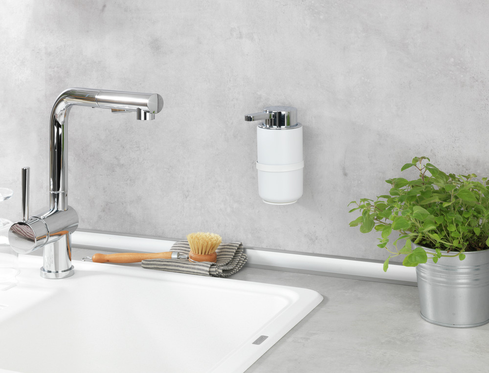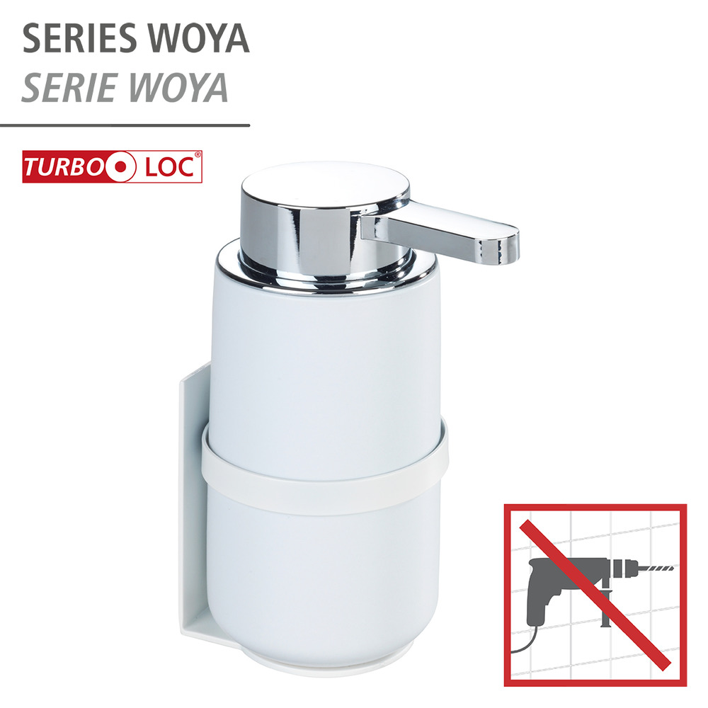 Ein besonderer Vorteil des aus hochwertiger Keramik gefertigten Seifendosierers Woya liegt in seiner Anbringung: Das unerlässliche Accessoire wird mittels beiliegender Halterung an der Wand befestigt. Die Befestigung erfolgt ohne zu bohren durch das bewährte Turbo-Loc® System von Wenko.