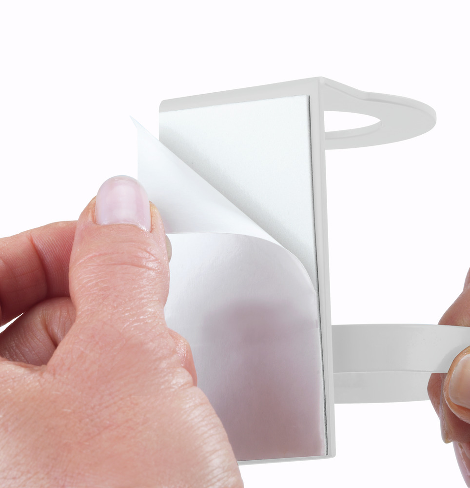 Die Befestigung ist kinderleicht. Die Turbo-Loc® Wandbefestigung ist ein Klebesystem mit extrem festem Halt auf allen glatten Oberflächen. Einfach die Schutzfolie des Klebepads entfernen, die Halterung an der gewünschten Stelle fixieren und anpressen. Dann nur noch das Accessoire einhängen.Das Klebepad ist rückstandslos wieder entfernbar.