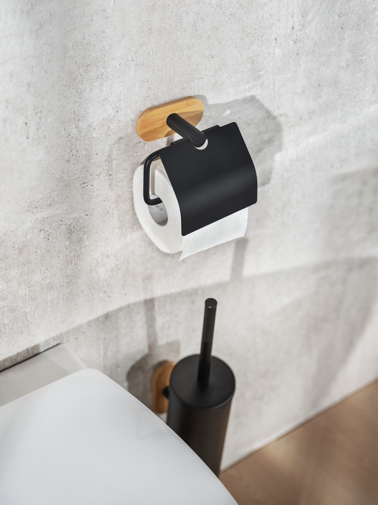 Die WC-Garnitur Orea Bamboo besteht aus hochwertigem rostfreiem Edelstahl und verleiht dem Bad durch das matt schwarze Design einen Industrial Chic. Die Toilettenbürste ist zudem mit Elementen aus natürlichem Bambus kombiniert. Diese warme Ausstrahlung des schnell nachwachsenden Rohstoffes bildet ein harmonisches Konzept.