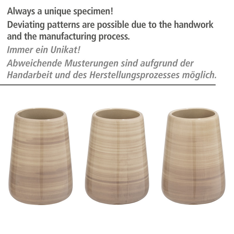 Mit der WC-Garnitur Pottery Sand erstrahlt das gesamte Bad in einem ansprechenden Design. Gefertigt aus hochwertiger Keramik und von Hand bemalt ist der WC-Bürstenhalter zeitlos schön und jedes Stück ein Unikat.