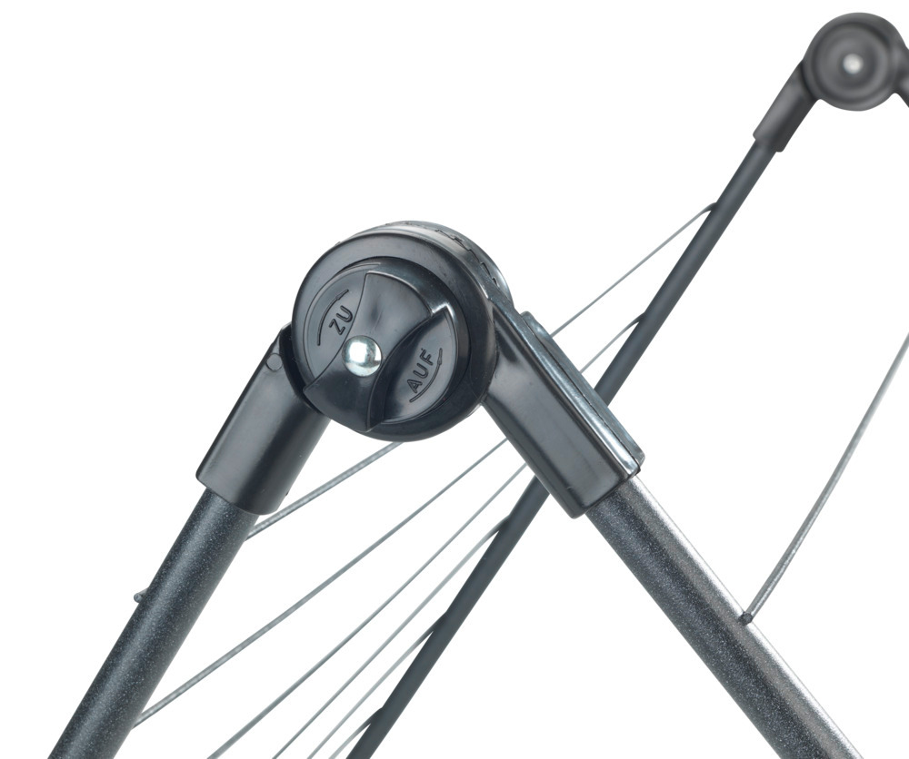 Ein Feststellrädchen sorgt dafür, dass das Gestell in der gewünschten Position bleibt und die frische Wäsche entspannt trocknen kann.