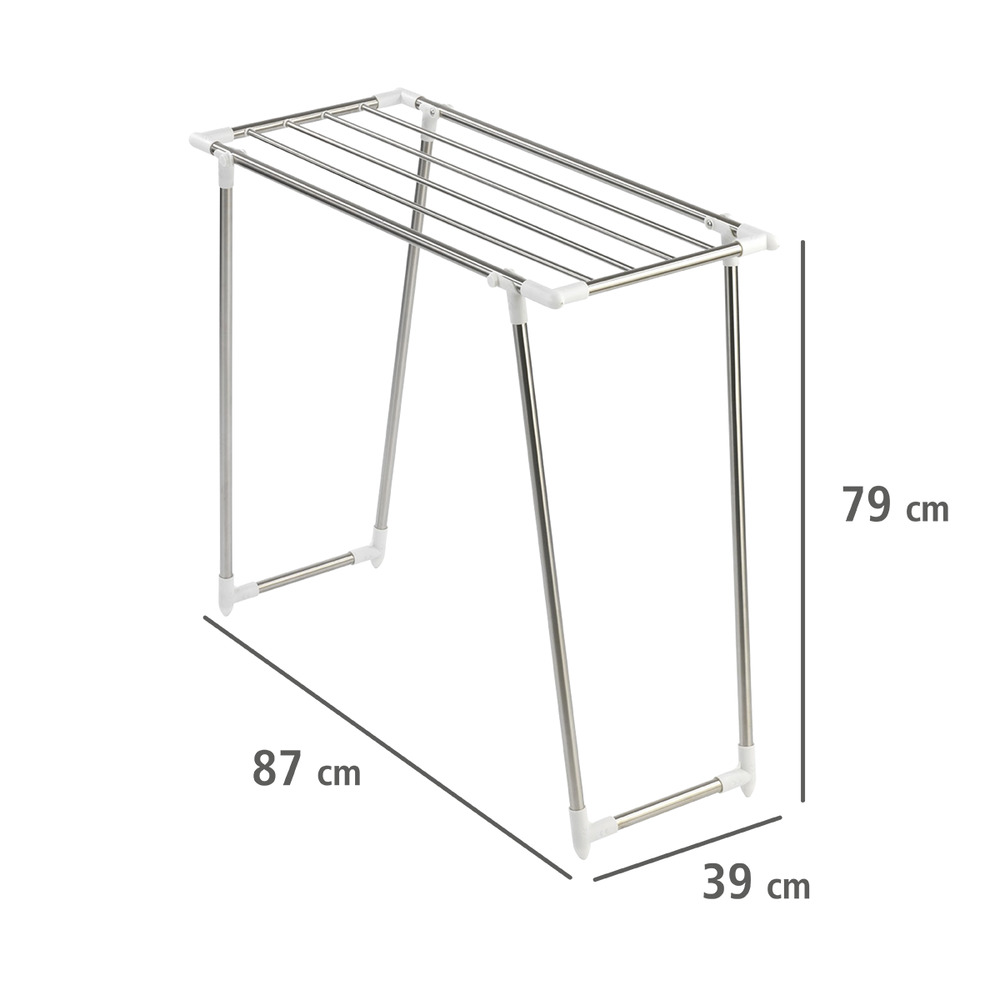 Er ist ideal geeignet für Haushalte, bei denen kleinere Waschladungen anfallen, oder kann auch als zusätzlicher Trockner zum Flügelwäscheständer genutzt werden, um an Waschtagen noch mehr Platz zum Trocknen der Textilien zu schaffen.