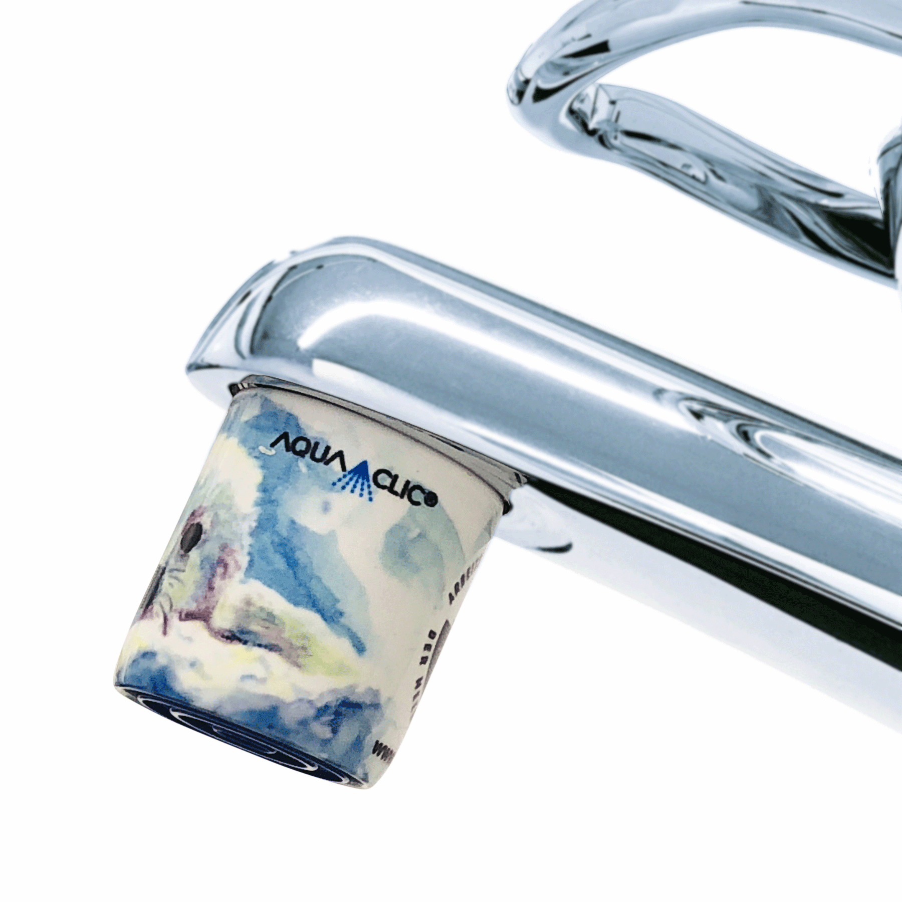 Der AquaClic Durchflussbegrenzer Baby Robbe aus Messing verbraucht nur 5 Liter in der Minute statt ca. 12 Liter Wasser bei einem ungeregelten Hahn.