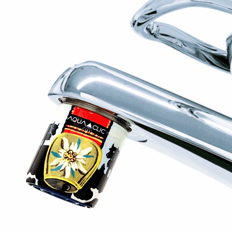 Der AquaClic Durchflussbegrenzer Swiss Alpverbraucht nur 5 Liter Wasser pro Minute. Ein ungeregelter Hahn verbraucht ca. 12 Liter Wasser pro Minute.